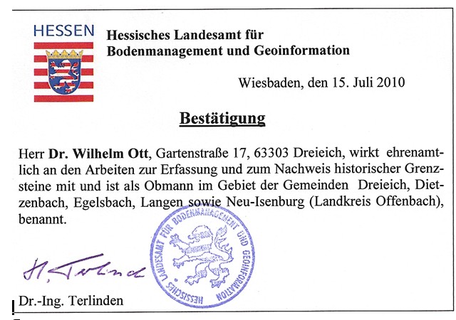 Bis 2018 dokumentierte ich die dortigen Grenzsteine nahezu vollständig auf speziellen Erfassungsblättern. Dank der Unterstützung des Koordinators des Bürger-GIS des Kreises Offenbach konnten diese Daten digital aufbereitet und verlinkt werden: